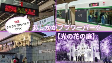あしかがフラワーパークのイルミネーションは2025/10/18(土)~2026/2/15(日)。この時期に3本だけ西船橋駅(千葉県)から最寄りのあしかがフラワーパーク駅まで臨時特急『きらきら足利イルミ』が運行されます。千葉埼玉方面から乗換不要の特急で日本三大イルミを楽しみましょう。